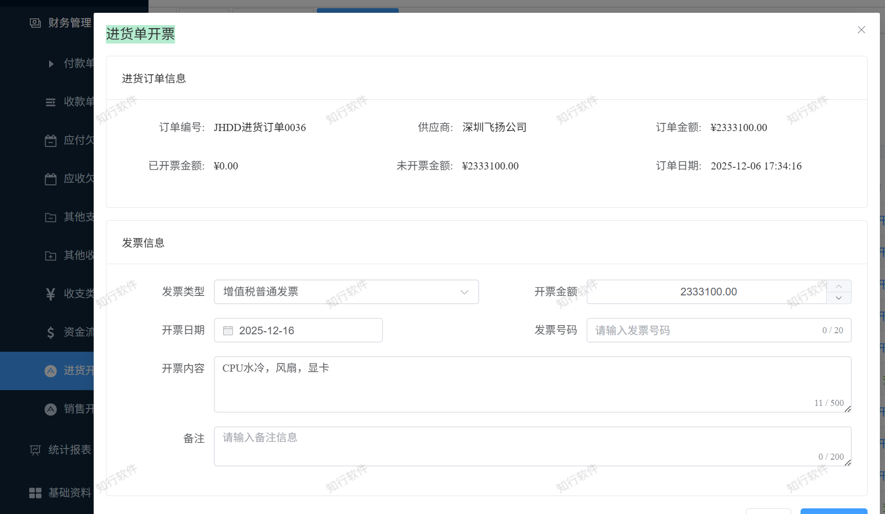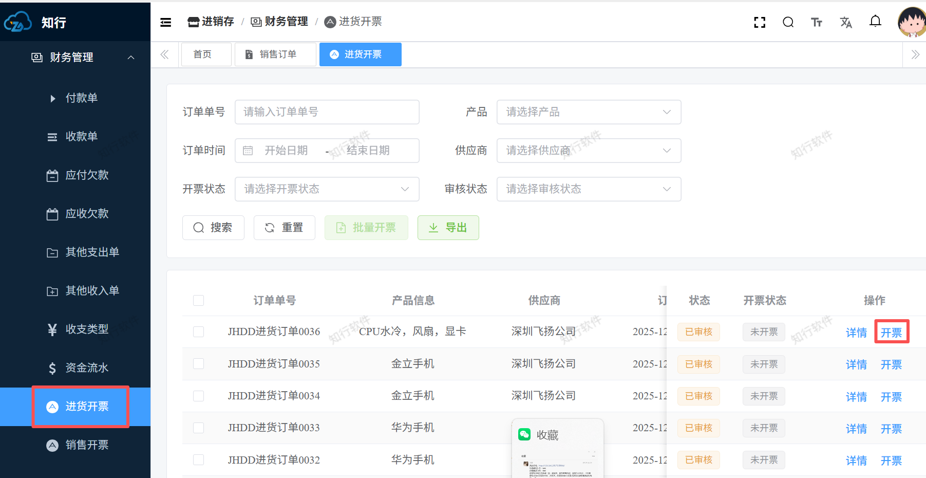 进货开票是针对供应商进货的单据进行开票记录的过程