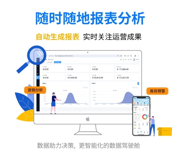 知管云进销存软件支持PC端、移动端等多平台登录,用户可以通过不同设备实时查看和管理企业的库存、销售、财务等数据,做到随时随地掌控业务情况。