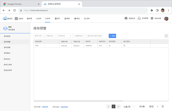 知管云进销存软件内置的库存预警功能能够根据设定的库存下限自动提醒采购,有效避免断货。同时,它也帮助避免过度备货,降低库存资金占用,优化资金流动。