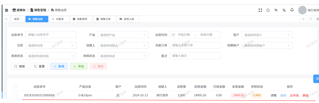 • 销售出库管理是指商品在从仓库发货前进行的一系列操作,如订单核对、配货、复核确认和库存账目的实时更新等。高效的销售出库流程能够确保订单及时、准确发货,而知管云进销存软件正是企业实现这一目标的有力工具。
