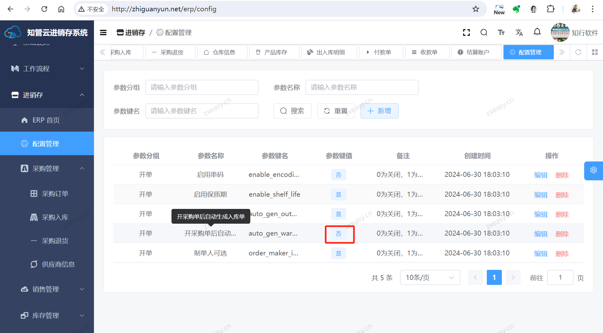 系统默认开启 “开单自动生成出入库单” (系统配置-高级配置),入库单会随着进货单的提交自动生成,所以入库单功能只有才关闭 “开单自动生成出入库单” 设置,才需要在入库单功能中手动生成入库单。