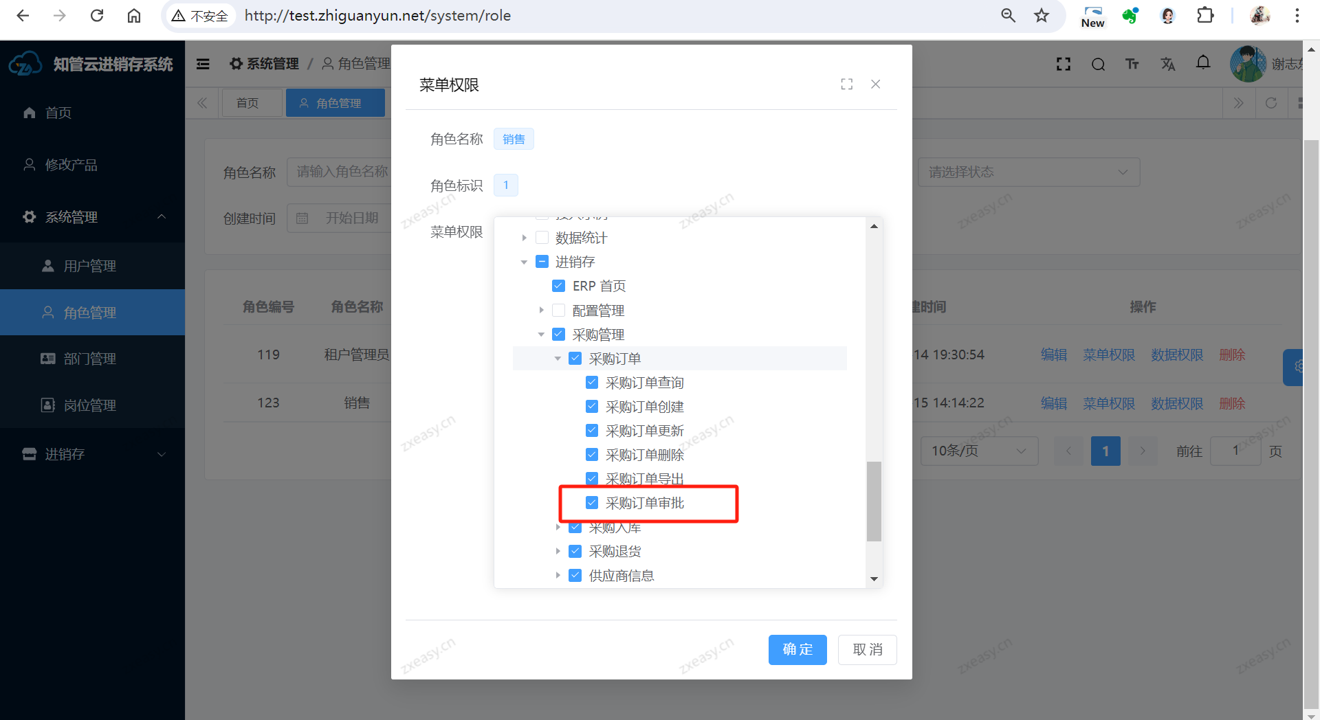 功能路径:系统设置—角色管理—菜单权限