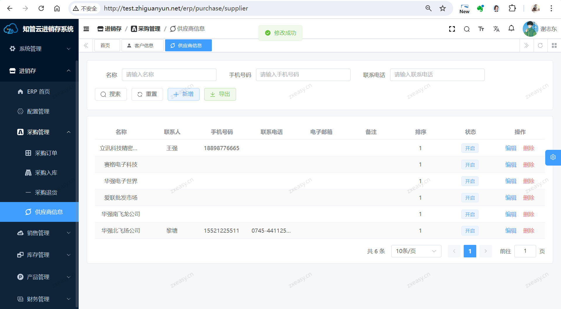 供应商信息功能,主要用于供应商的联系电话、开票信息等维护。包含对供应商的新增、删除等维护操作。